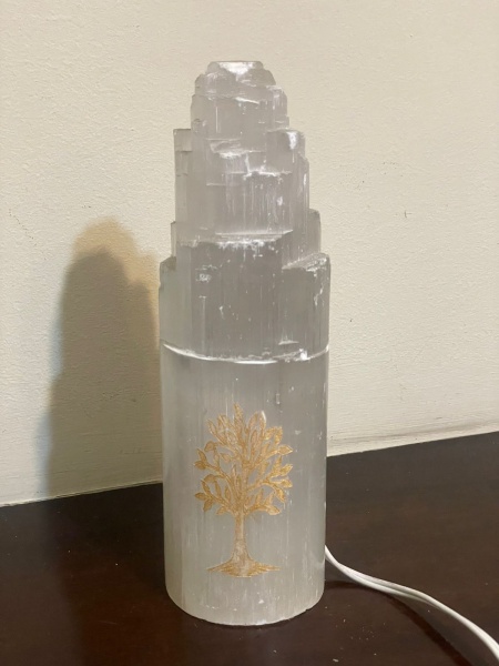 • Luminária confeccionada em pedra natural Selenita, conhecida por sua beleza e brilho característicos. Peça elegante, ideal para decoração de ambientes, criando um efeito luminoso suave e sofisticado.  Excelente para quem aprecia itens naturais e artesanais de destaque decorativo. OBS.: (Precisa colocar lâmpada). Qualquer duvida entrar em contato pelo whatsapp: 11932480666. OBS: A sua participação em nosso leilão ajuda em causas animais.