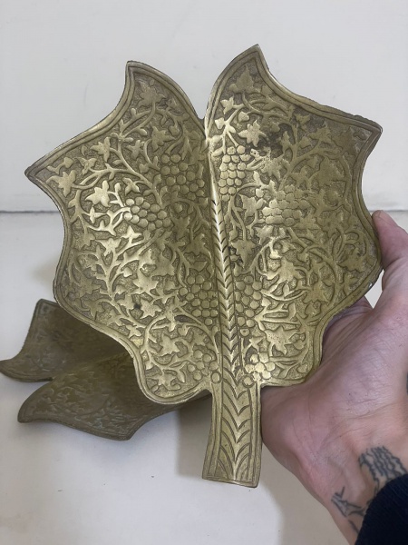 • Conjunto com dois pratos em latão, em formato de folhas, com estilo indiano, ideais para servir petiscos, aperitivos ou para uso decorativo. Peças com estética artesanal e acabamento clássico, perfeitas para mesas, bares ou ambientações étnicas.Qualquer dúvida entrar em contato pelo WhatsApp: 11932480666.OBS: A sua participação em nosso leilão ajuda em causas animais.