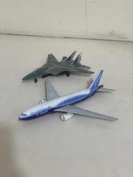• Conjunto com dois aviões de brinquedo, sendo um Boeing 777 e um jato militar da marca Maisto. Peças ideais para colecionadores, decoração temática ou para presentear, com bom nível de detalhes e visual marcante.Qualquer dúvida entrar em contato pelo WhatsApp: 11932480666.OBS: A sua participação em nosso leilão ajuda em causas animais.