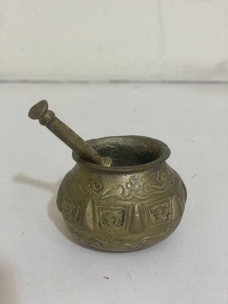 • Mini pilão de latão, em estilo indiano, peça decorativa cheia de charme e personalidade. Ideal para compor ambientes com estética étnica, boho ou oriental, além de ótimo item para coleção ou decoração de prateleiras e aparadores.Qualquer dúvida entrar em contato pelo WhatsApp: 11932480666.OBS: A sua participação em nosso leilão ajuda em causas animais.