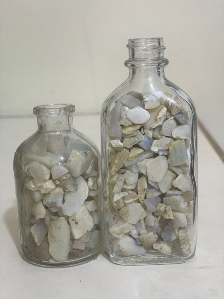 • Conjunto com duas garrafinhas contendo pedras de opalas naturais provenientes do Piauí, Brasil.Exemplares de grande beleza, apresentando belo jogo de cores característico dessa gema, ideais para coleção, apreciação mineralógica ou decoração.Qualquer dúvida entrar em contato pelo WhatsApp: 11932480666.OBS: A sua participação em nosso leilão ajuda em causas animais.