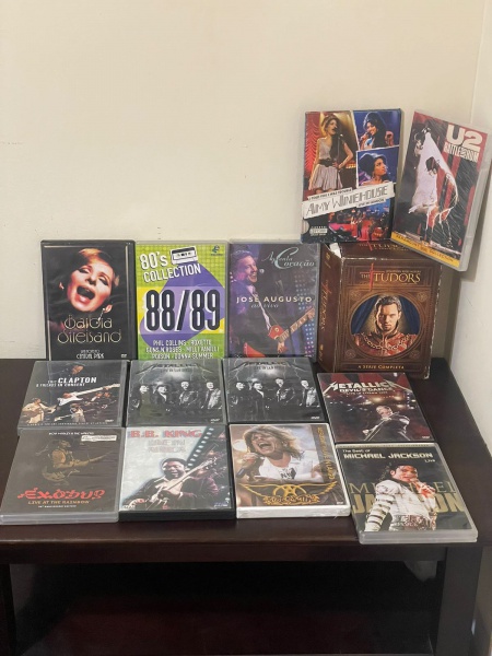 • Lote composto por 13 DVDs musicais originais, reunindo grandes nomes da música nacional e internacional.Inclui títulos de artistas como Amy Winehouse, U2, Michael Jackson, Bob Marley, B.B. King, Aerosmith, Metallica, Eric Clapton, Barbra Streisand, uma coletânea de rock internacional dos anos 80 e José Augusto.O lote acompanha também um box de DVDs da série The Tudors, contendo a série completa com 12 discos. Conjunto ideal para colecionadores e apreciadores de música e séries, com ampla diversidade de estilos e conteúdos.Qualquer dúvida entrar em contato pelo WhatsApp: 11932480666.OBS: A sua participação em nosso leilão ajuda em causas animais.